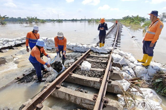 Tim tanggap darurat KAI segera dikerahkan ke lokasi banjir untuk menangani situasi dan memastikan kondisi lintasan aman untuk dilewati kembali.