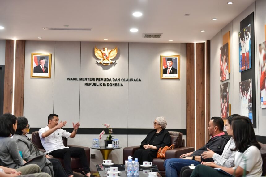 JAKARTA – Wakil Menteri Pemuda dan Olahraga Republik Indonesia (Wamenpora RI) Taufik Hidayat menerima Ketua Umum Pengurus Besar Persatuan Senam Indonesia (PB Persani), Ita Yuliati, di kantor Kemenpora, Jakarta, Senin (11/8/2025). Pertemuan tersebut membahas kesiapan Indonesia menjadi tuan rumah Kejuaraan Dunia Senam 2025 yang akan digelar pada 14–20 Oktober mendatang di Indonesia Arena, Jakarta.
