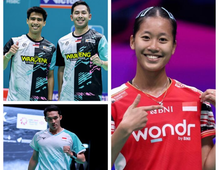 Tiga wakil Indonesia, Jonatan Christie, Putri Kusuma Wardani, dan Sabar Karyaman Gutama/Mohammad Reza Pahlevi Isfahani siap berjuang menuju partai puncak.