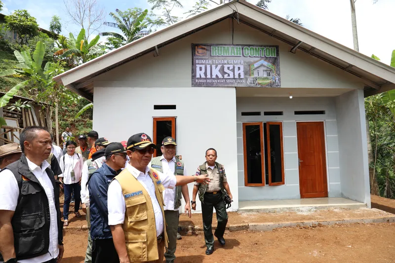 JAKARTA – Kepala Badan Nasional Penanggulangan Bencana (BNPB) Letjen TNI Dr. Suharyanto, S.Sos., M.M., meninjau pembangunan hunian tetap (huntap) bagi korban bencana banjir dan tanah longsor di Desa Wanajaya, Kecamatan Cisolok, Kabupaten Sukabumi, Jawa Barat, Rabu (8/1).