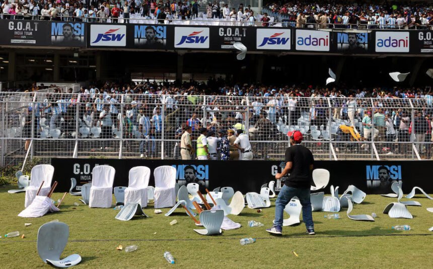 JAKARTA – Kunjungan Lionel Messi ke India berakhir kacau pada Sabtu (13/12/2025) setelah kerusuhan pecah di Stadion Salt Lake, Kolkata. Ribuan penggemar yang kecewa karena bintang Argentina itu hanya tampil sebentar melemparkan kursi, benda-benda ke lapangan, bahkan memanjat pagar stadion.