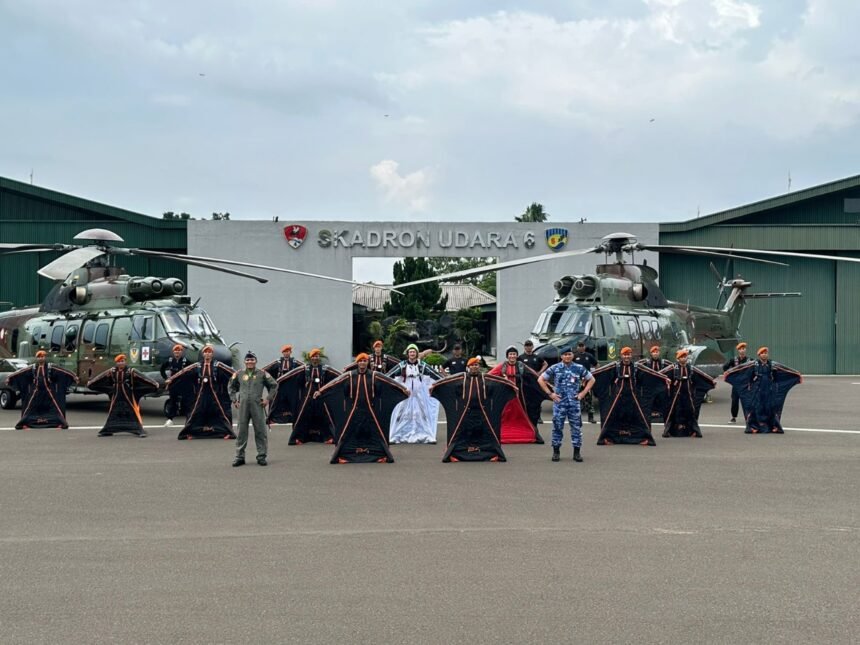 BANDUNG – Komando Pasukan Gerak Cepat (Kopasgat) TNI AU mencetak sejarah sebagai pasukan elite pertama di Indonesia yang menguasai teknik terjun wingsuit. Dalam debut perdananya, 10 prajurit melakukan penerjunan dengan formasi 4-3-3, menunjukkan keberanian dan kerja sama di udara.