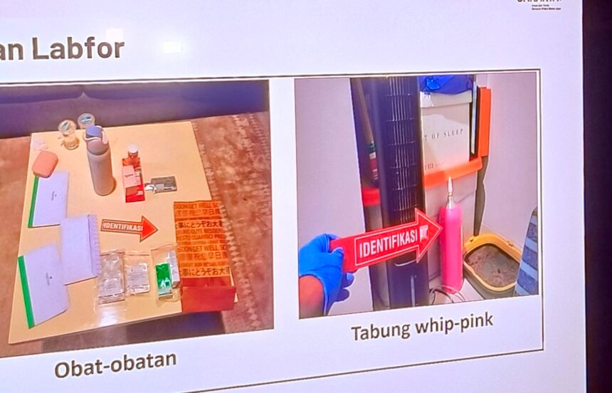 Sementara itu, Puslabfor Toksikologi Bareskrim Polri mengungkap hasil analisis terhadap tabung Whip Pink yang ditemukan di lokasi. Kompol Irfan Rofik menjelaskan, tabung tersebut saat diperiksa berada dalam kondisi kosong. Namun, sampel serupa yang diserahkan penyidik masih mengandung zat tertentu.