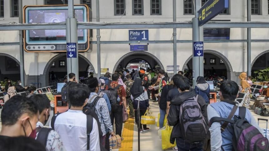JAKARTA – Lonjakan penumpang kereta api terus terjadi di Stasiun Gambir, Jakarta Pusat, pada Jumat pagi. Ribuan calon penumpang memenuhi area stasiun untuk berangkat ke berbagai kota tujuan, menandakan masih tingginya mobilitas masyarakat usai perayaan Natal dalam masa angkutan Natal dan Tahun Baru (Nataru) 2025/2026.