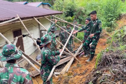 Satgas Gulbencal TNI AD Bersihkan Rumah Korban Longsor di Tapanuli Utara