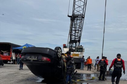 Proses Pengangkatan Mobil Brigjen yang Nyemplung ke Laut